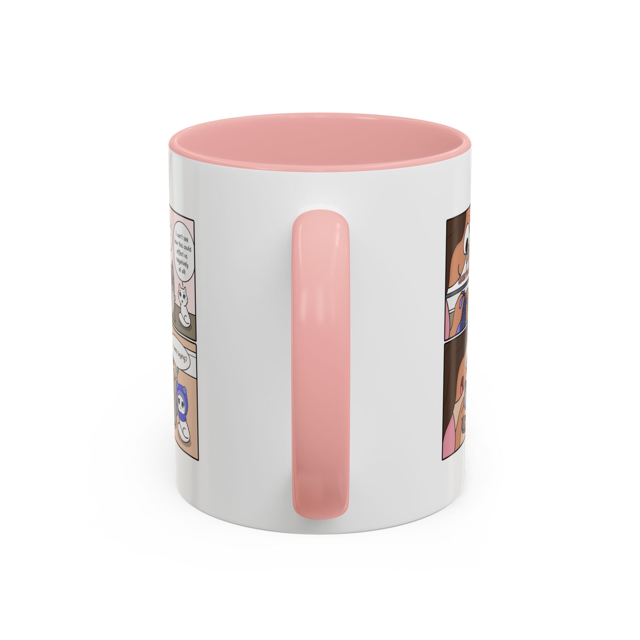 The Cat Crochet Comic Coffee Mug is available in the following options: 11oz / Pink, 11oz / Light Blue. Check the product page for current stock availability.